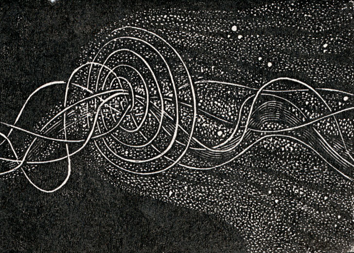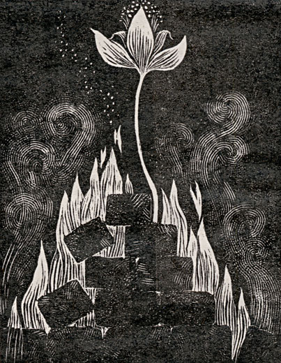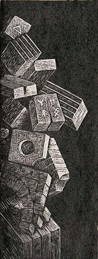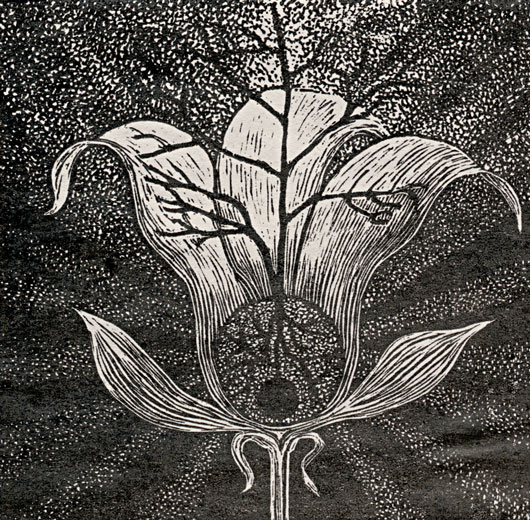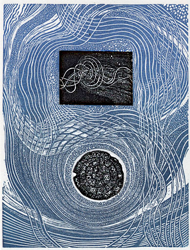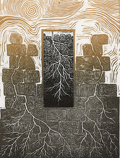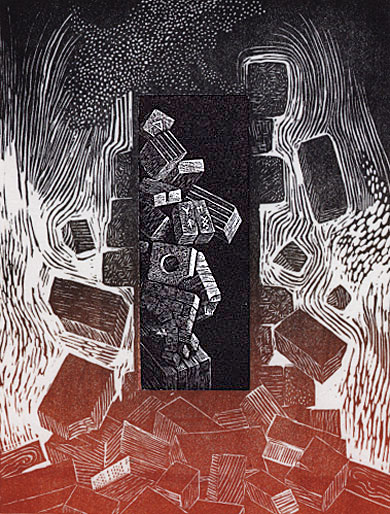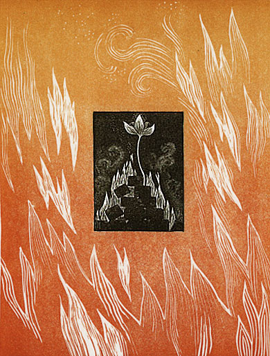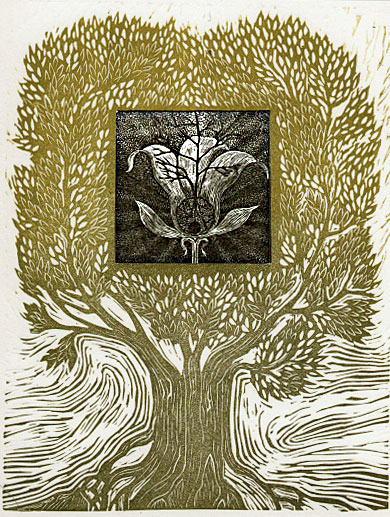 ElegySuite of five linocuts (17 x 22 cms) and a poem with windows leading to wood engravings |