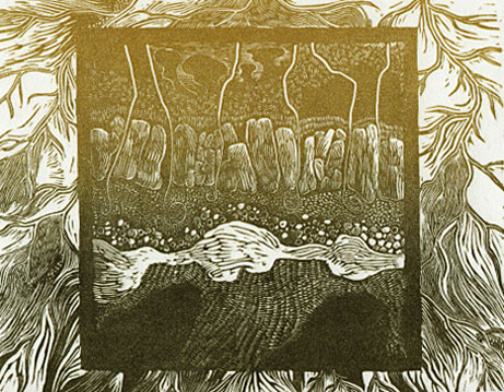 The ElementsEarth, Air Fire and Water Suite of eight linocuts with blind-embossed image beneath (not shown) |