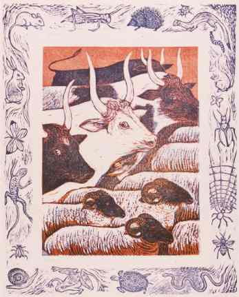 "..linocuts of the Seven Days of Creation have a luminous innocence reminiscent perhaps of Blake at his least apocalyptic ... "Yvonne Skargon: Multiples |