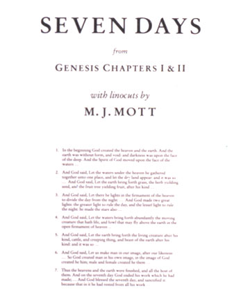 Seven Days Set of seven boxed linocuts (33 x 44 cms) with text from Genesis I & II, |